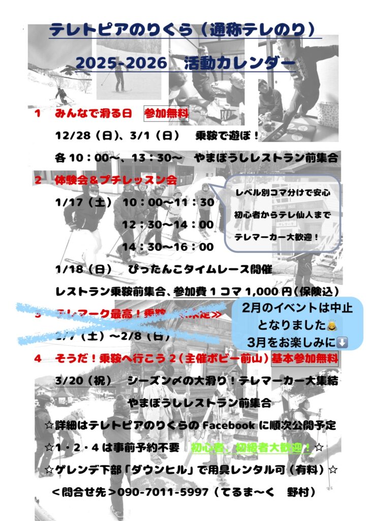 テレのりでは、今シーズンの活動予定を下記の通りとしました。